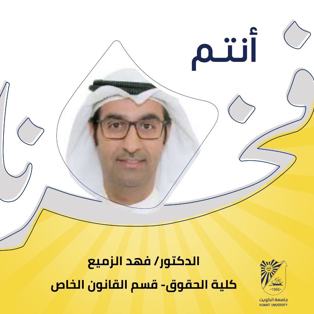 12.ديسمبر.2024صورة يهنئ القائم بأعمال عميد كلية الحقوق أ.د. عبد الرحمن الرضوان وأسرة الكليةالدكتور فهد الزميعبمناسبة فوزه بجائزة «جابر الأحمد للباحثين الشباب» في دورتها الـ 34 لعام 2023شارك
