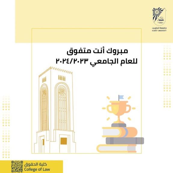 4.نوفمبر.2024صورة تهنئ أسرة الحقوق الطلبه المتفوقين للعام الجامعي 2023/2024 متمنين لهم المزيد من التقدم والنجاح شارك