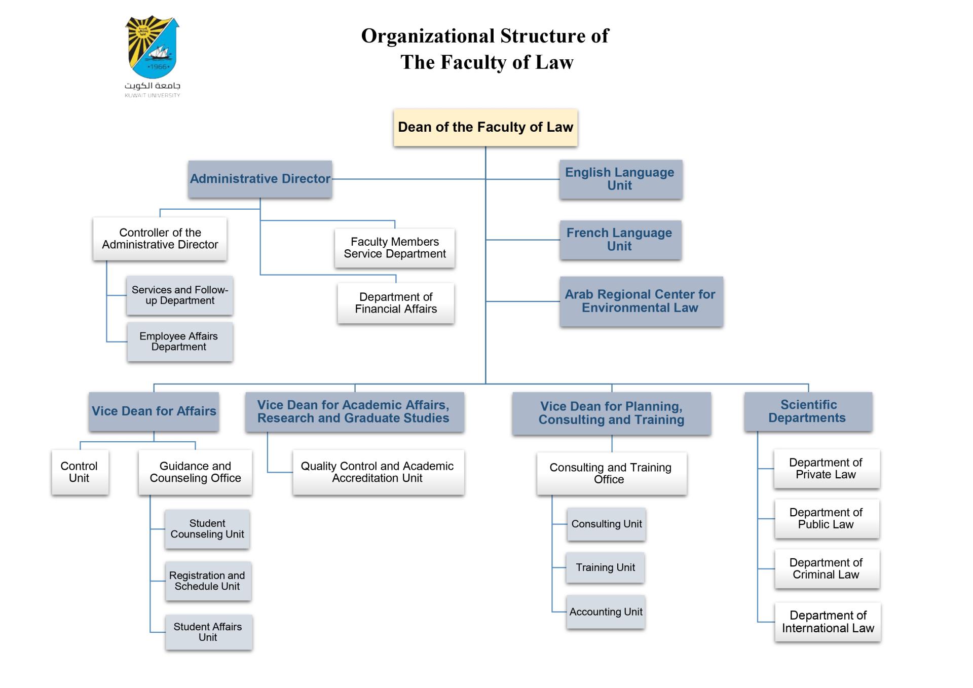 Prof. Abdulrhman AlradhwanActing Dean of the Faculty of Law and Vice Dean for Planning, Consulting and TrainingImage Dr. Mohammed AltamimiVice Dean for Academic Affairs, Research and Graduate StudiesImage Dr. Ahmad AlkhudhairActing Vice Deans of Student Affairs OfficeImage ORG of The Faculty of LawImage Vice Dean for Planning and Consulting Vice Dean for Academic Affairs, Research and Graduate StudiesVice Dean for Student AffairsAdministrative Director
